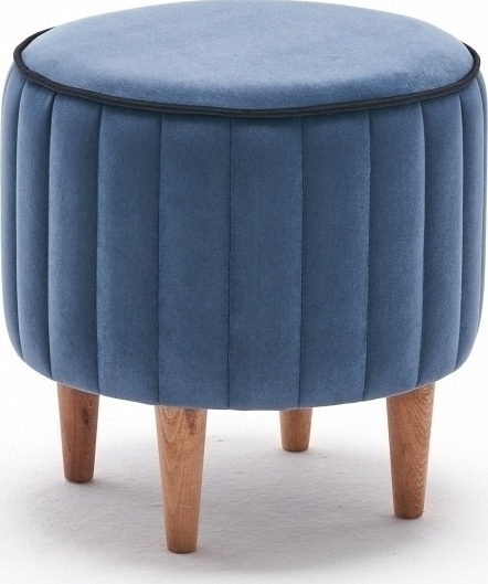 Sittpuff av trä. Klädsel av polyester och sammet.