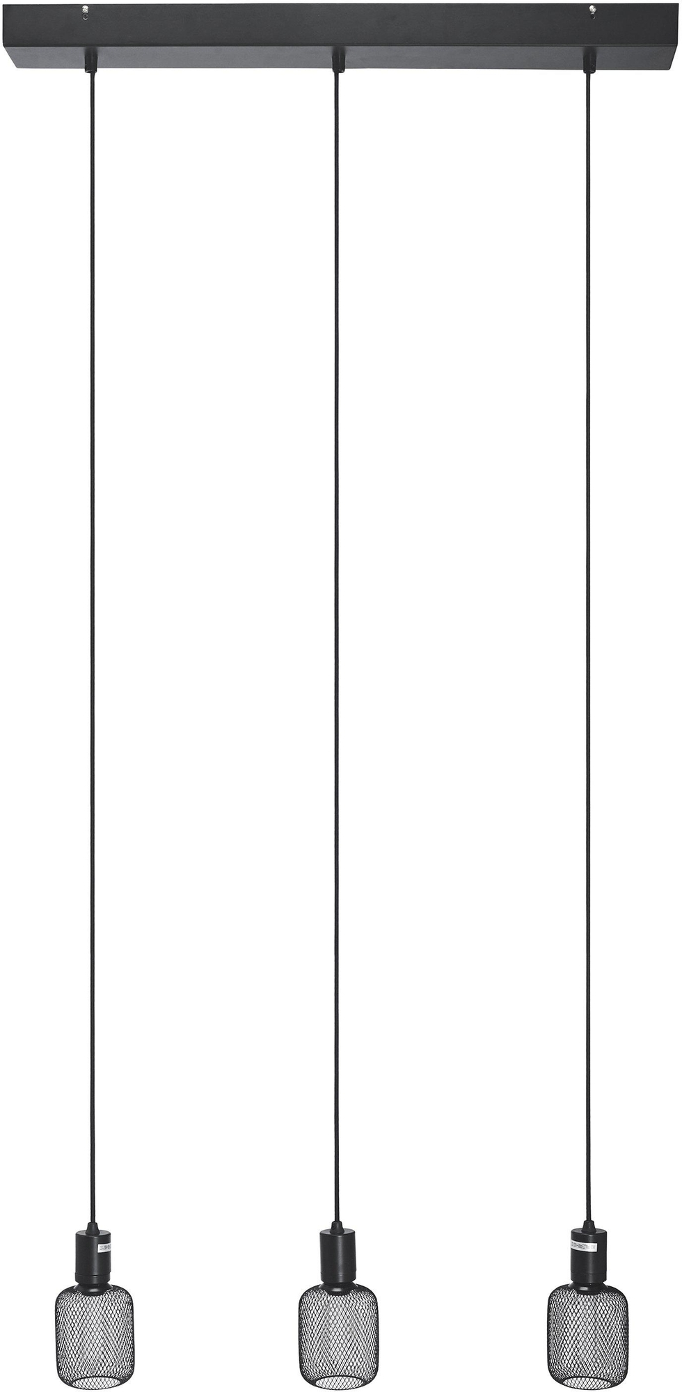 Line/Grid LED är en taklampa med tre hängande lamphållare. Det medföljer tre dekorativa ljuskällor med ett finmaskigt metallnät som ger fina reflektioner när de är tända. Sladdarna är av textil, 1,5 meter långa och kan justeras till önskad längd. Takplattan är 80 cm lång.