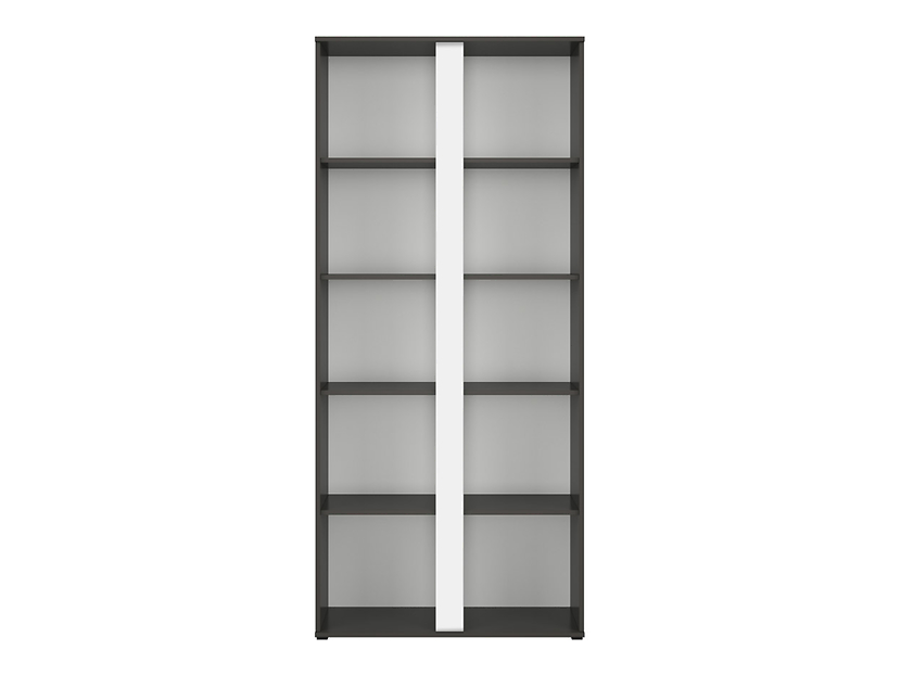 En rymlig bokhylla i grafitgrått med många hyllplan där du på ett enkelt sätt kan organisera dina böcker eller andra föremål. Den dekorativa remsan på mitten blir en fin detalj och är den röda tråden genom hela möbelserien.