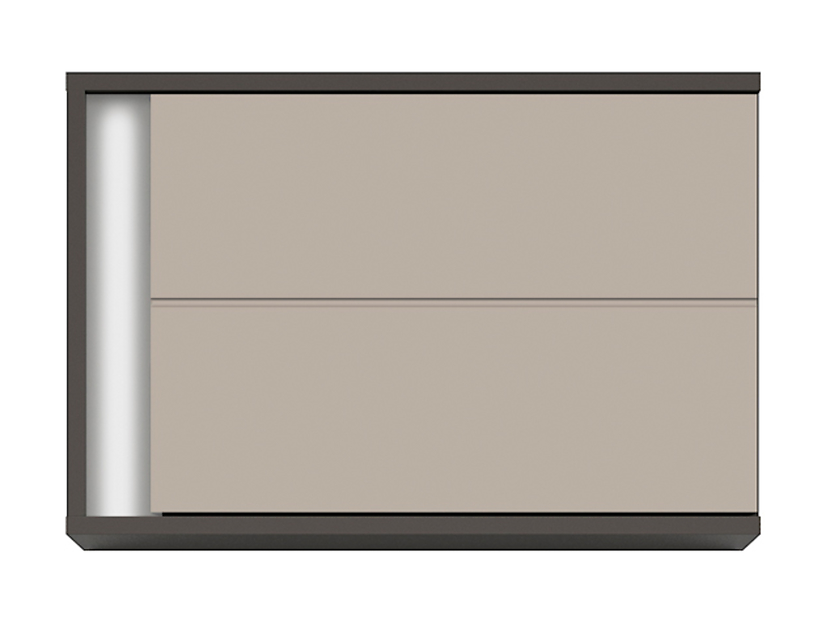 Ett snyggt väggskåp i grafitgrått med en ljusgrå front. Den dekorativa remsan på vänster sida blir en fin detalj och är den röda tråden genom hela möbelserien. Häng med fördel ihop flera väggskåp i en snygg konstellation för att skapa mer förvaringsutrymme.