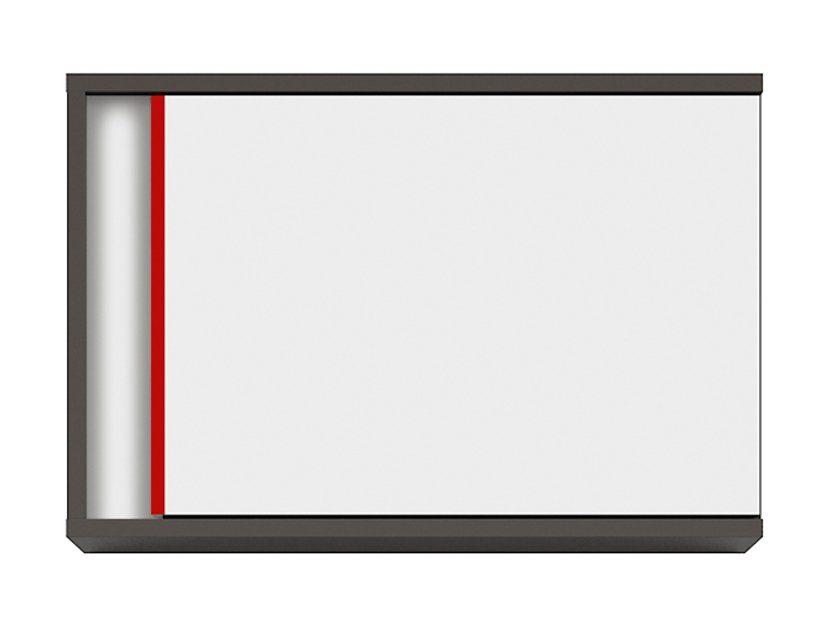 Ett snyggt väggskåp i grafitgrått med en vit front. Den dekorativa remsan på vänster sida blir en fin detalj och är den röda tråden genom hela möbelserien. Häng med fördel ihop flera väggskåp i en snygg konstellation för att skapa mer förvaringsutrymme.