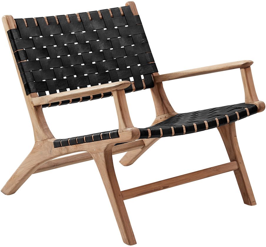 En snygg fåtölj med en retro design. Stolen är tillverkad av teak trä, ryggstöd och sits är tillverkat med läder.