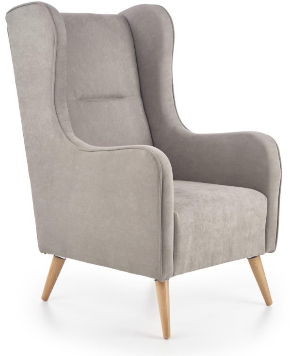 En mysig fåtölj med en klassisk design. Fåtöljen är tillverkad av solid trä med den naturliga looken på benen och sitsen är klädd med ett mycket behagligt tyg för maximal komfort.
