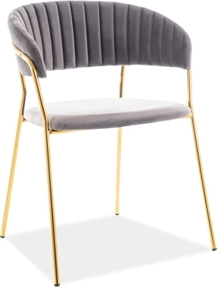 Matstol i metall. Klädd med polyester i sammetsimitation.