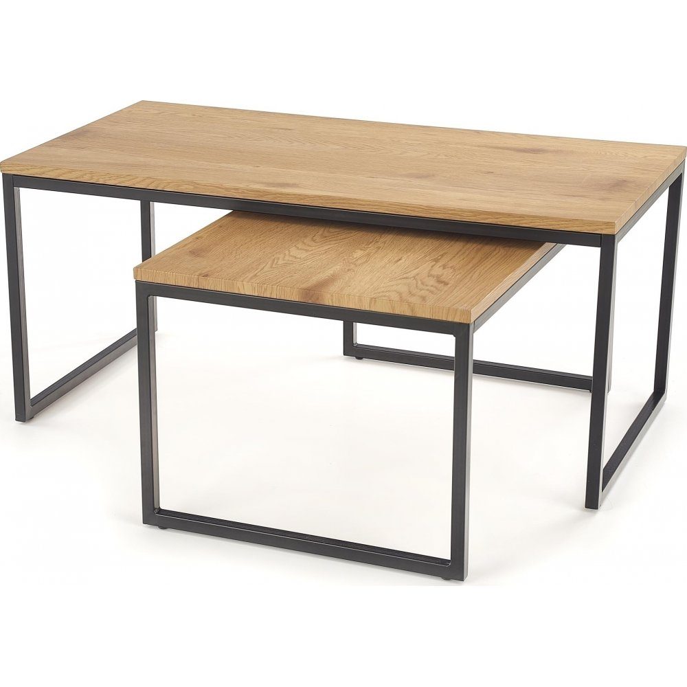 Ett par mysiga satsbord med en stilren design. Bordsskivorna är tillverkade av MFP (premium träskiva) med ett härligt fanér och underredet är av pulverlackerad metall.