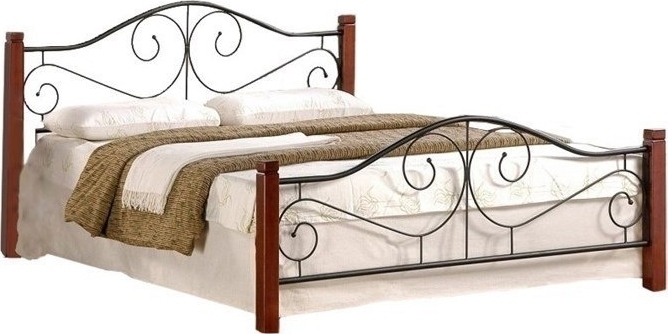 Härlig säng med en elegant design. Tillverkad i massivt trä med ett snyggt utförande av antik körsbär, och gavlar i svart pulverlackerad metall. Sängen är mycket stadig och hållbar och är anpassad för madrasser och resårbotten med måtten 160x200 cm. Passar perfekt in i sovrummet.