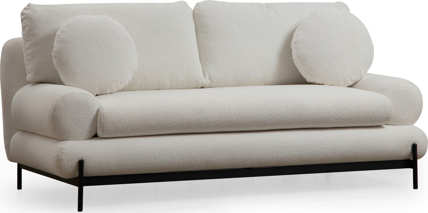 2-sits soffa av bokträ och spånskiva. Klädsel av polyester och ben av plast.
