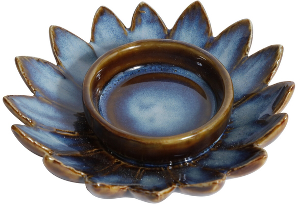 En trevlig ljushållare i blomutförande i blå keramik.