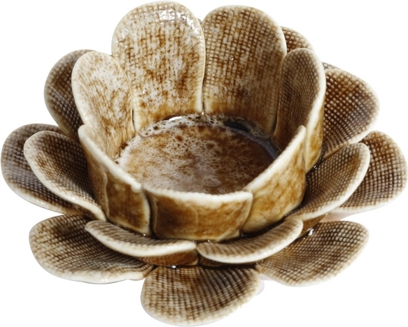 En trevlig ljushållare i blomutförande i ljusbrun keramik.
