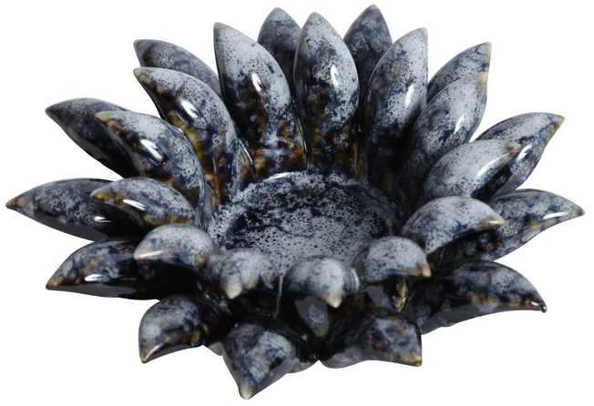 En trevlig ljushållare i dahliaförande i blå keramik.