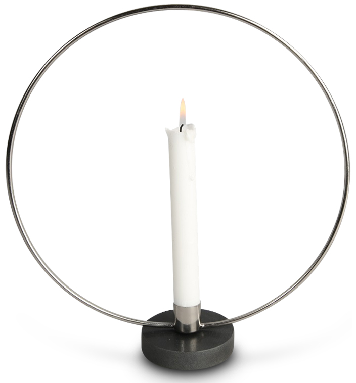 Song ljusstake med 1 st hållare för stearinljus. Kromad ring med fot i grå granitsten