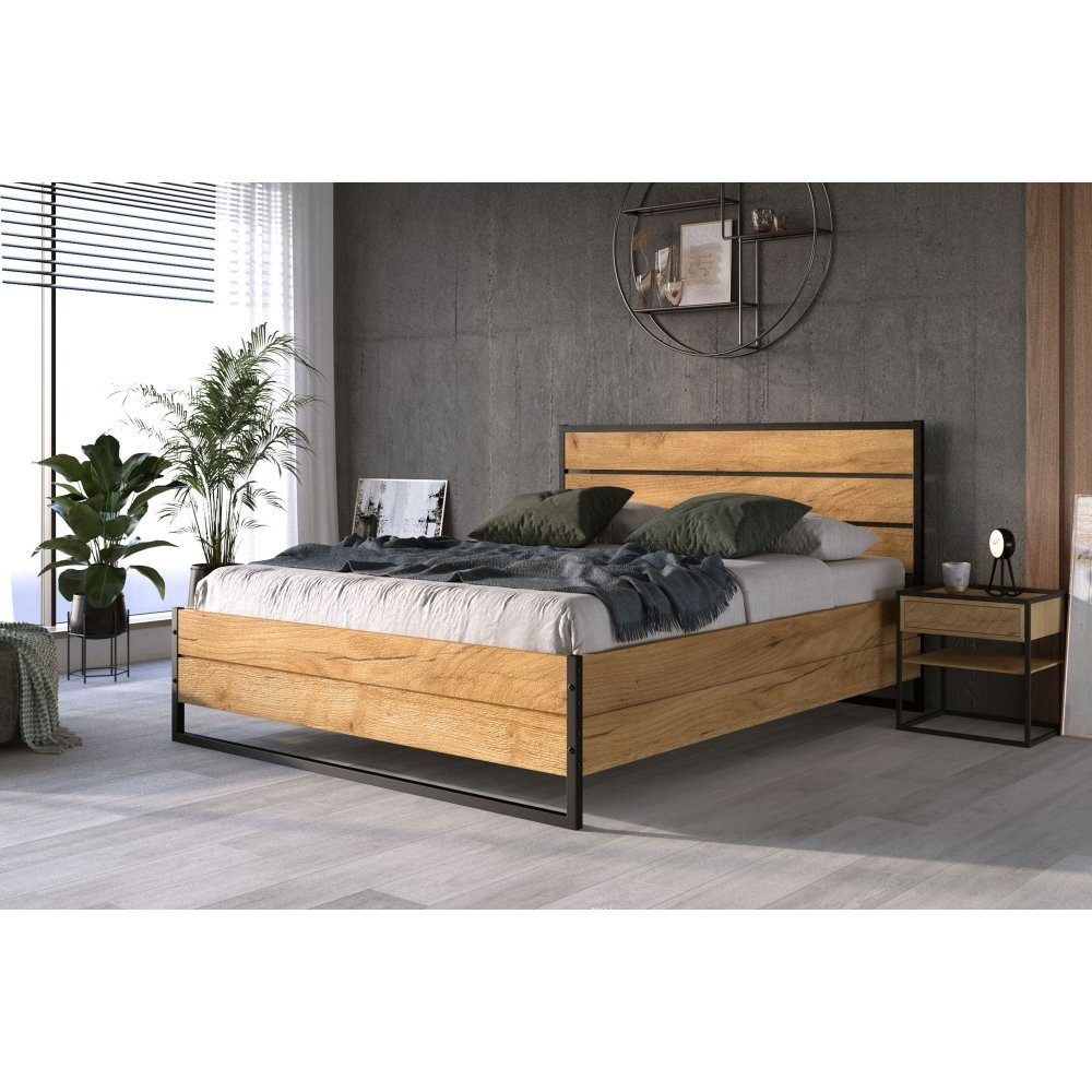 Stilren och prisvärd säng i valfri storlek. Ramen är tillverkad av ek och metall med ribbotten av stabila björklister som vilar på metallskenor. Bädden kan lyftas för att komma åt förvaringsutrymmet under sängen. Bädden håller sig uppfälld med hjälp av en gasfjäder. Madrasserna av 18 cm:s polyuretanskum har ett överdrag av hypoallergent polyestertyg. Överdraget med blixtlås kan tas av för att tvättas. Sängen leveraras omonterad.