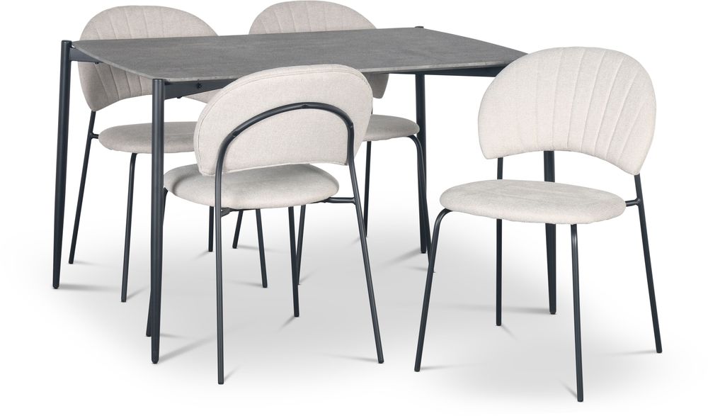 Lokrume matgrupp 120 cm bord i betongimitation + 4 st Hogrän beige stolar