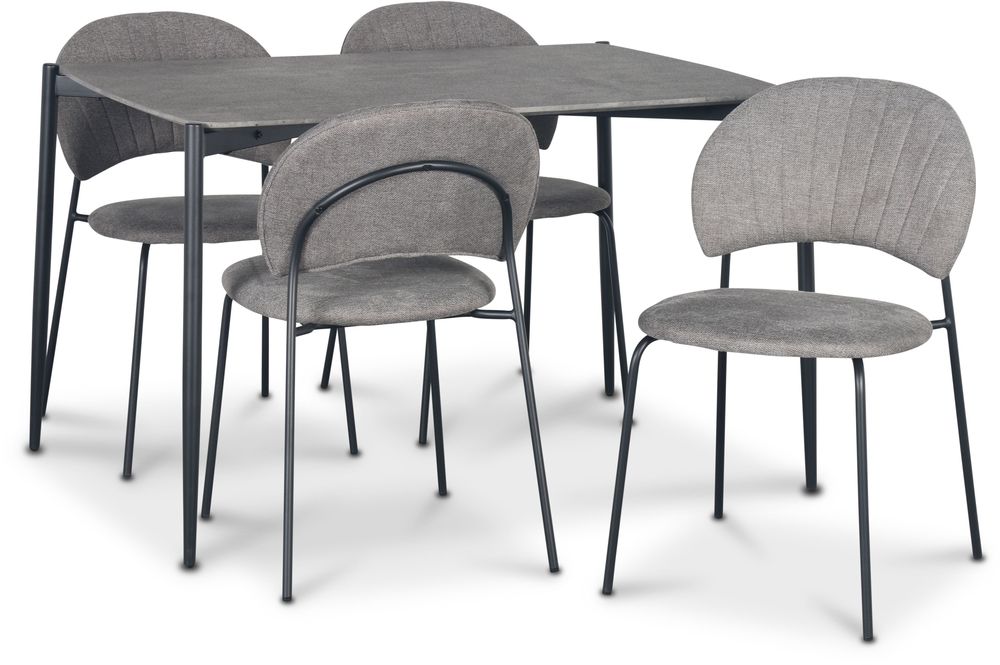 Lokrume matgrupp 120 cm bord i betongimitation + 4 st Hogrän grå stolar