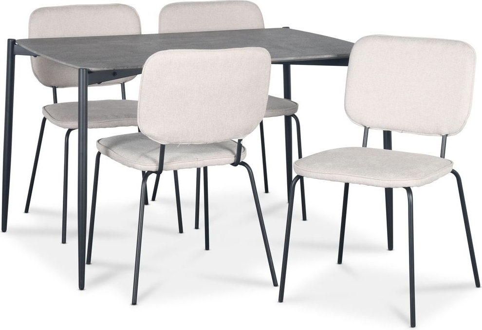 Lokrume matgrupp 120 cm bord i betongimitation med 4 st Lokrume beige stolar