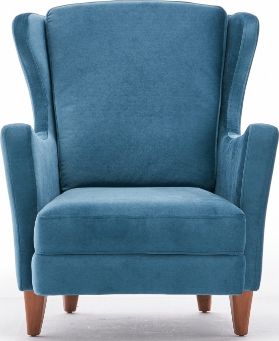 Fåtölj av bokträ. Klädsel av polyester(sammet).