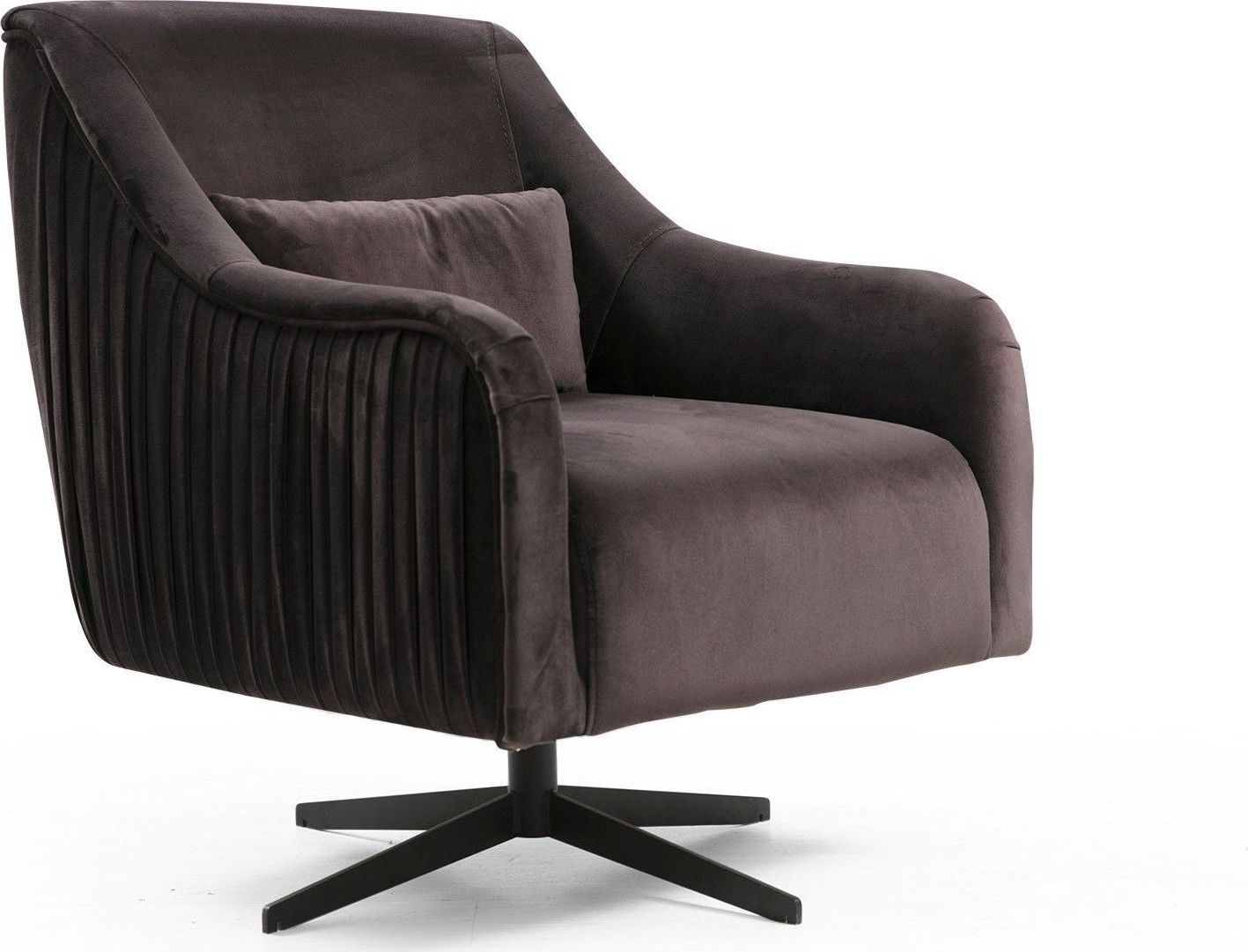 Fåtölj av trä och metall med klädsel av polyester. Kudde ingår.
