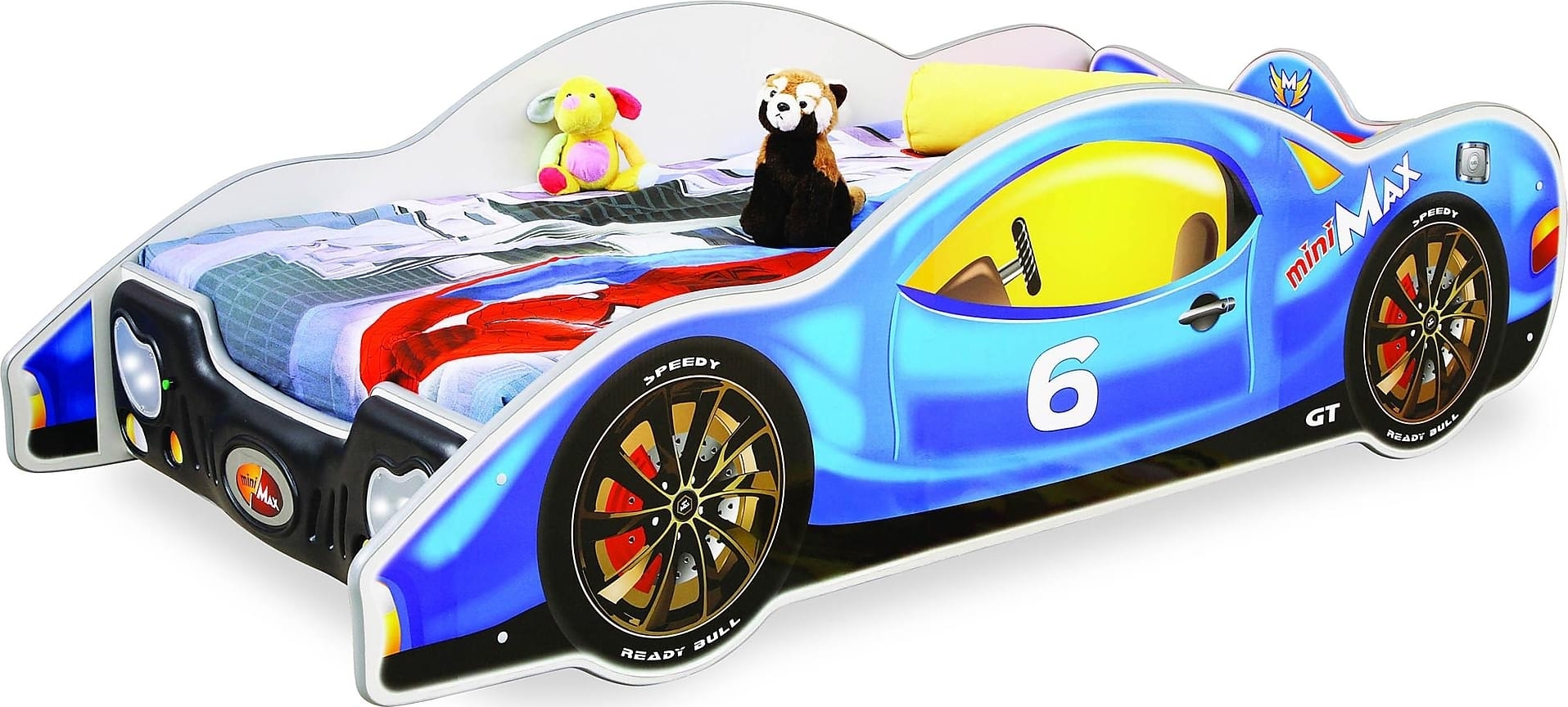 Låt barnets fantasi flöda i denna racerbil, strömlinjeformad MDF med tryck av fräcka fälgar för den rätta känslan. Släck ner rummet, tänd frambelysningen på bilen och gör dig redo för en åktur och natt i denna bil.