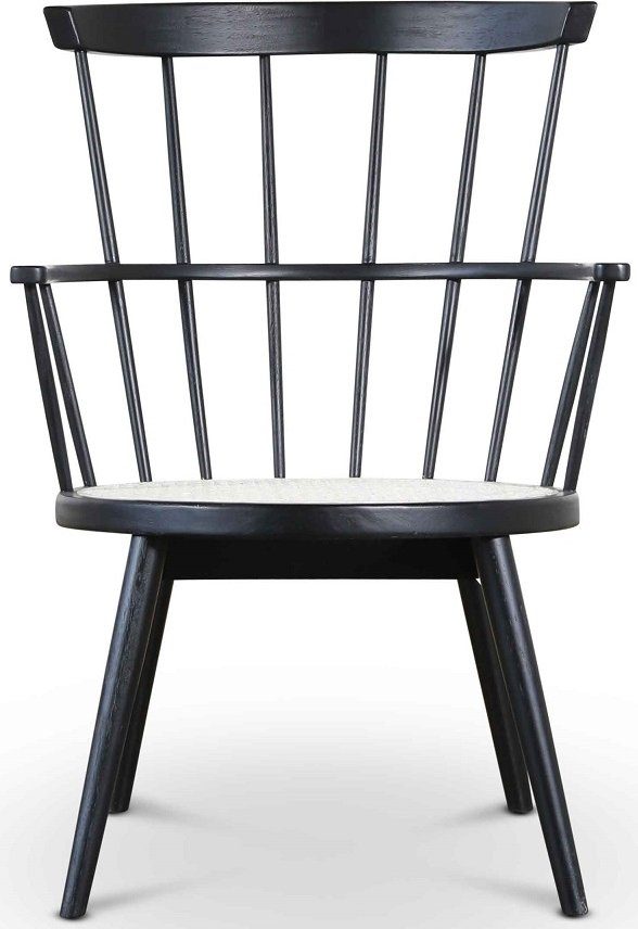Scoop loungefåtölj, svart trä med sits i rotting. En skandinavisk design där man blandar massivt trä med rotting i natur.