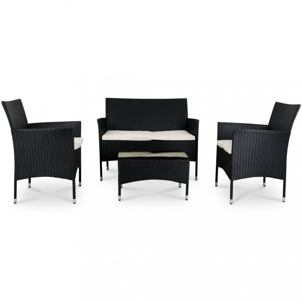 Ett smidigt loungeset i vävd konstrotting – perfekt för dig som vill skapa en bekväm plats på en mindre uteplats eller balkong. Trots sin kompakta storlek rymmer gruppen både en soffa, två fåtöljer samt ett praktiskt bord med glasskiva.
