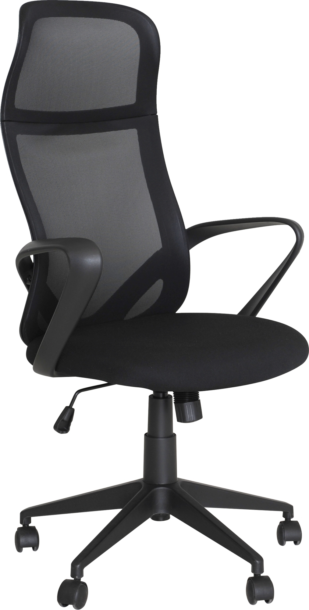 Höj- och sänkbar kontorsstol med låsbar sittposition och reglerbart motstånd. Ryggen är klädd i ventilerande meshtyg. Levereras omonterad.