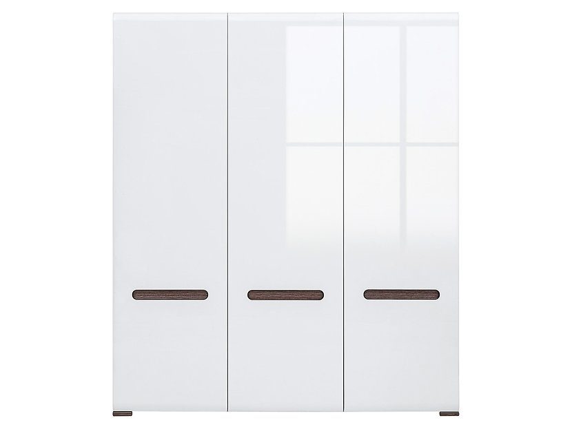 En rymlig garderob i vitt med tre dörrar. Garderoben är smart inredd med klädstång och hyllplan för att du enkelt ska kunna håll ordning på dina kläder. Handtagen är integrerade med en wengefärgad räfflad baksida som en snygg detalj.