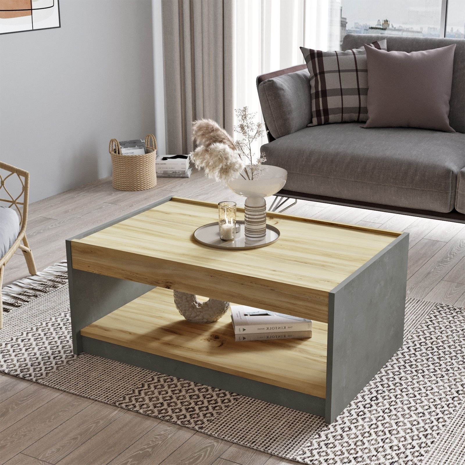 Soffbord av melaminbelagd spånskiva.
