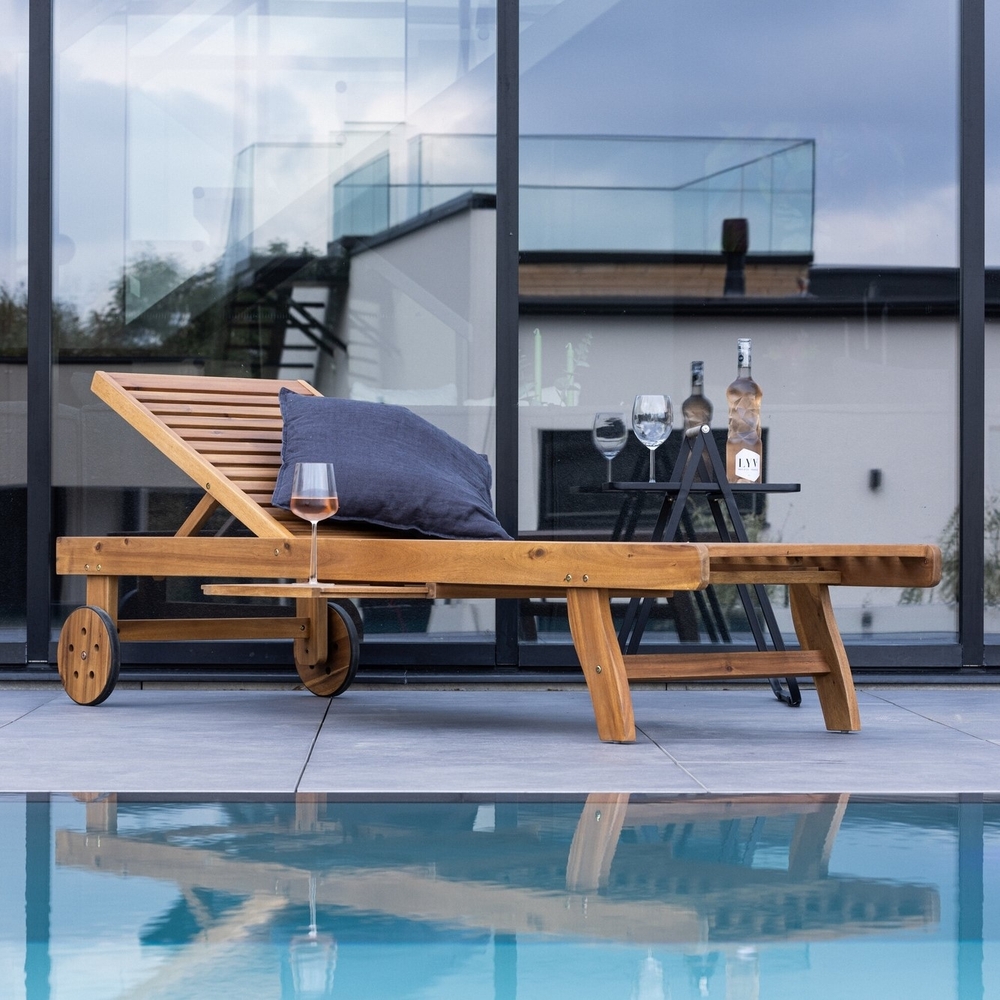 Solsängen Luzon är den perfekta följeslagaren för dina avkopplande dagar utomhus. Tillverkad av slitstark acacia med en teaklook, erbjuder den enkelhet och elegans i ett och samma paket. Med sin stilrena design framträder dock en unik detalj - en praktisk bricka på sidan, perfekt för att hålla din bok, dryck eller solkräm inom räckhåll medan du njuter av solen. Solsängen Luzon har också hjul, vilket gör den lätt att förflytta så att du alltid kan hitta det bästa soliga hörnet i trädgården eller på terrassen. Den är också justerbar, vilket låter dig hitta den mest bekväma liggpositionen medan du kopplar av i solens sken. Med Luzon solsängen kan du njuta av lyxen av utomhusavkoppling med stil och bekvämlighet. Skapa din egen personliga oas och låt Luzon bli din favoritplats för soliga dagar och lata stunder utomhus