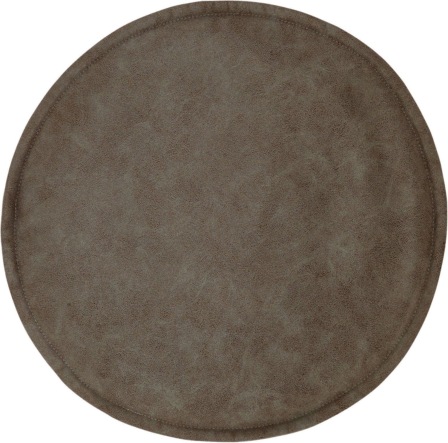 Rund stolsdyna i konstskinn med sydd kant och med en dekorativ söm på framsidan. Dynan är 40cm i diameter. Produkten är certifierad enligt STANDARD 100 by OEKO-TEX®. Certifieringen garanterar att produkten är testad och fri från ämnen som kan vara skadliga för hälsan och miljön.