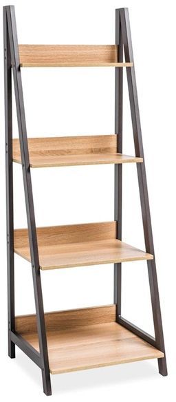 En härlig steghylla med en modern design. Stommen är tillverkad av mörkbrun metall och hyllplanen är av MDF med ett härligt ek utförande.