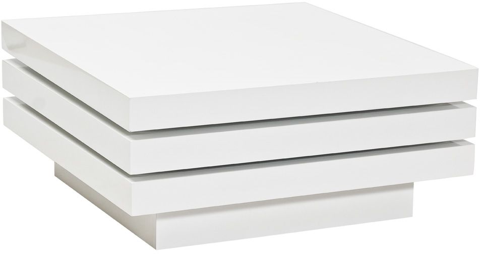 Ett mysigt soffbord med en modern design. Bordet är tillverkat av vitlackerad MDF med vridbara skivor.