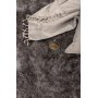 Polyestermatta i grå nyans. Materialet skimrar vackert i den höga luggen och ändrar glans beroende på hur ljuset träffar.