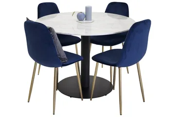 Estelle Matgrupp 106 cm Rund med 4 Polar stolar, Svart/Guld