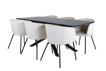 Jimmy Matgrupp 195 cm Rektangulär med 6 Petra stolar, Svart