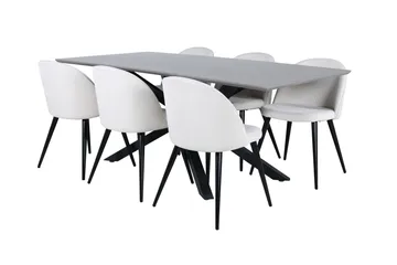 Jimmy Matgrupp 195 cm Rektangulär med 6 Velvet stolar, Svart