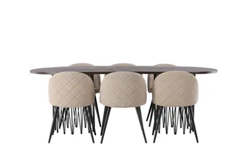 Stone Matgrupp 220 cm Rektangulär med 6 Velvet stolar, Beige
