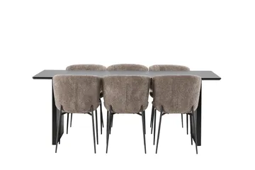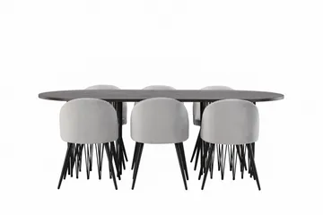 Vail Matgrupp 200 cm Rektangulär med 6 Velvet stolar, Svart