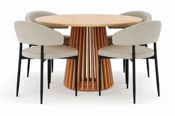 Peyra Matbord 120 cm Rund med 4 Sawako Stolar, Natur