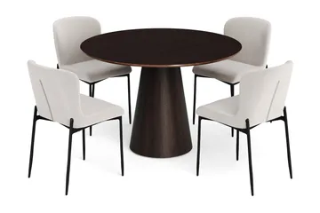 Durango Matgrupp 120 cm Rund med 4 Tempe Stolar, Valnöt