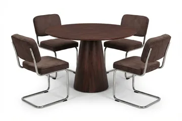 Uppveda Matbord 120 cm Rund med 4 st Jairam Matstolar, Brun