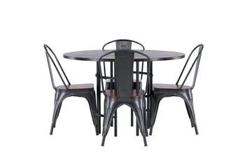 Stone Matgrupp 120 cm Rund med 4 Montros stolar, Svart