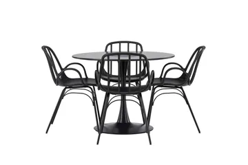 Lanzo Matgrupp 120 cm Rund med 4 Evelina stolar, Svart
