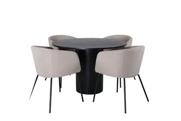 Plaza Matgrupp 100 cm Rund med 4 Velvet Deluxe stolar, Svart