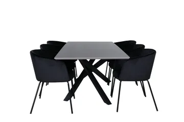 Petra Matgrupp 190 cm Rektangulär med 6 Petra stolar, Svart