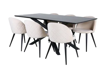 Piazza Matgrupp 180 cm Rektangulär med 6 Velvet stolar, Beige