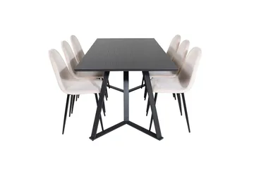 Astrid Matgrupp 200 cm Rektangulär med 6 Evelina stolar, Svart