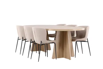Olivia Matgrupp 210 cm Rektangulär med 6 Polar stolar, Whitewash/Beige