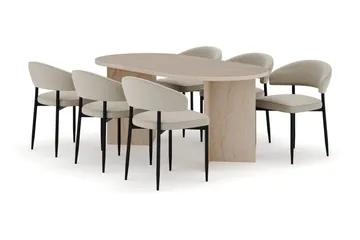 Peyra Matgrupp 200 cm Ovalt med 6 Dastoori Matstol - 2220070-6,1893316-1, Valnöt