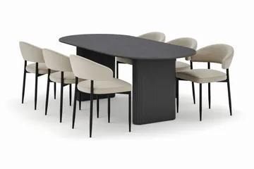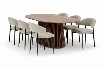 Peyra Ovalt Matbord 200 cm med 6 Sawako Stolar, Valnöt
