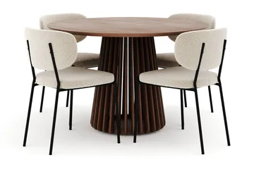 Peyra Runt Matbord 120 cm med 4 Sawako Stolar, Valnöt